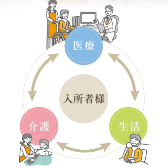 介護療養型医療施設の機能を継承し、看取りまで対応可能な「医療」と「介護」が融合した新しいカタチ。安心できる日々と、最期まで寄り添うケアを一体となって提供いたします。